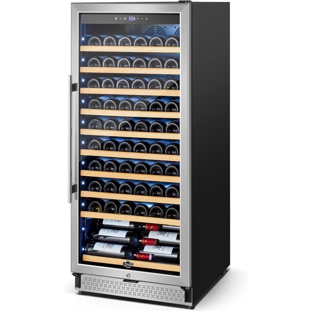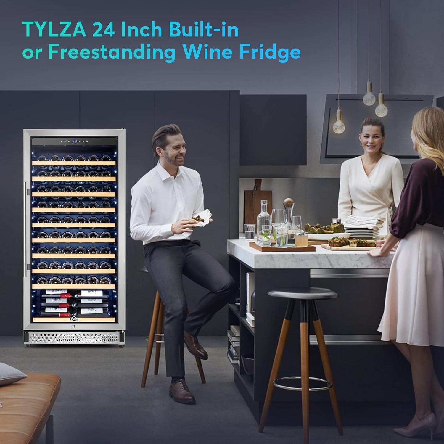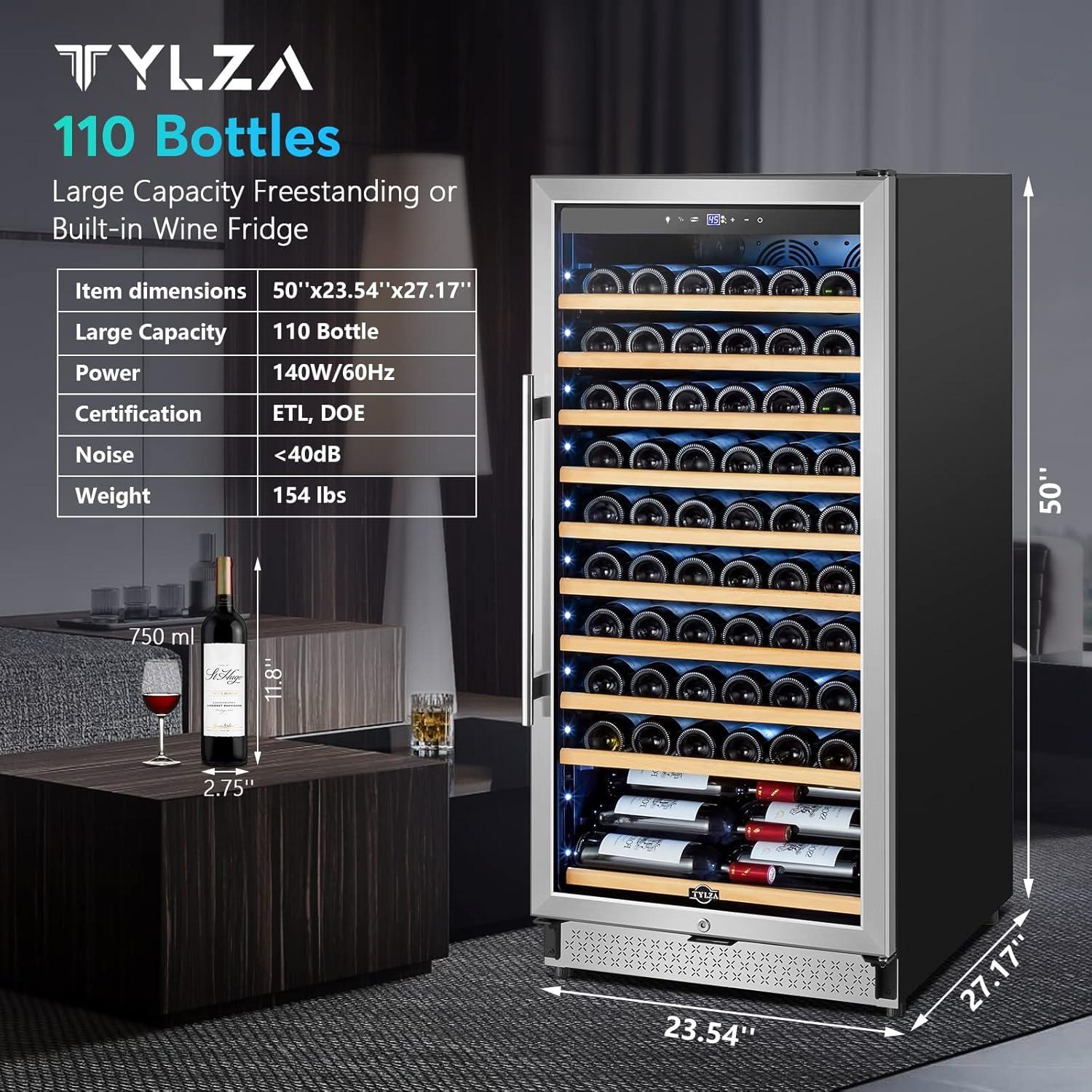 Tylza 110 Bottles Wine Cooler, 24 Inch Wine Cooler Refrigerator Built in or Freestanding Wine Fridge with Upgraded Compressor, Low Noise Fast Cooling and Intelligent Temperature Memory