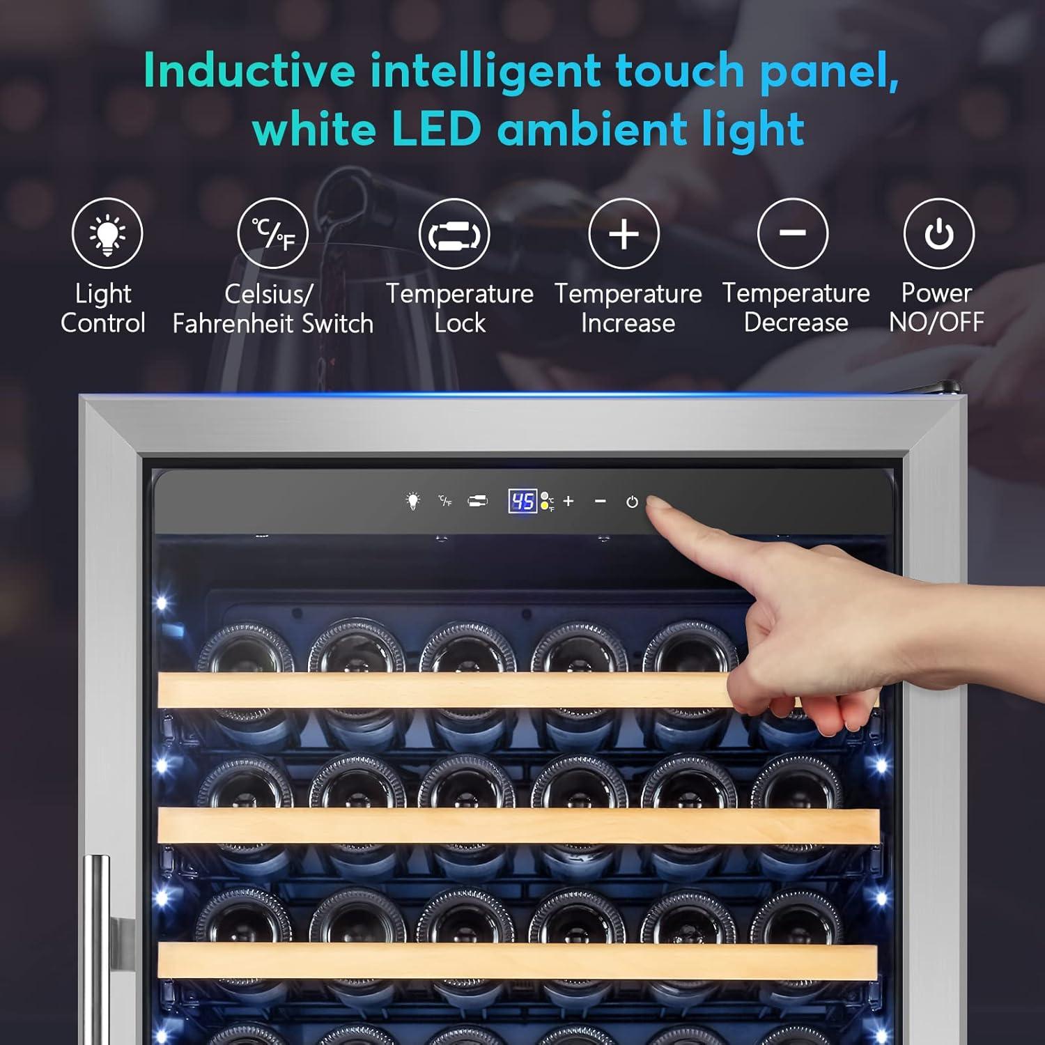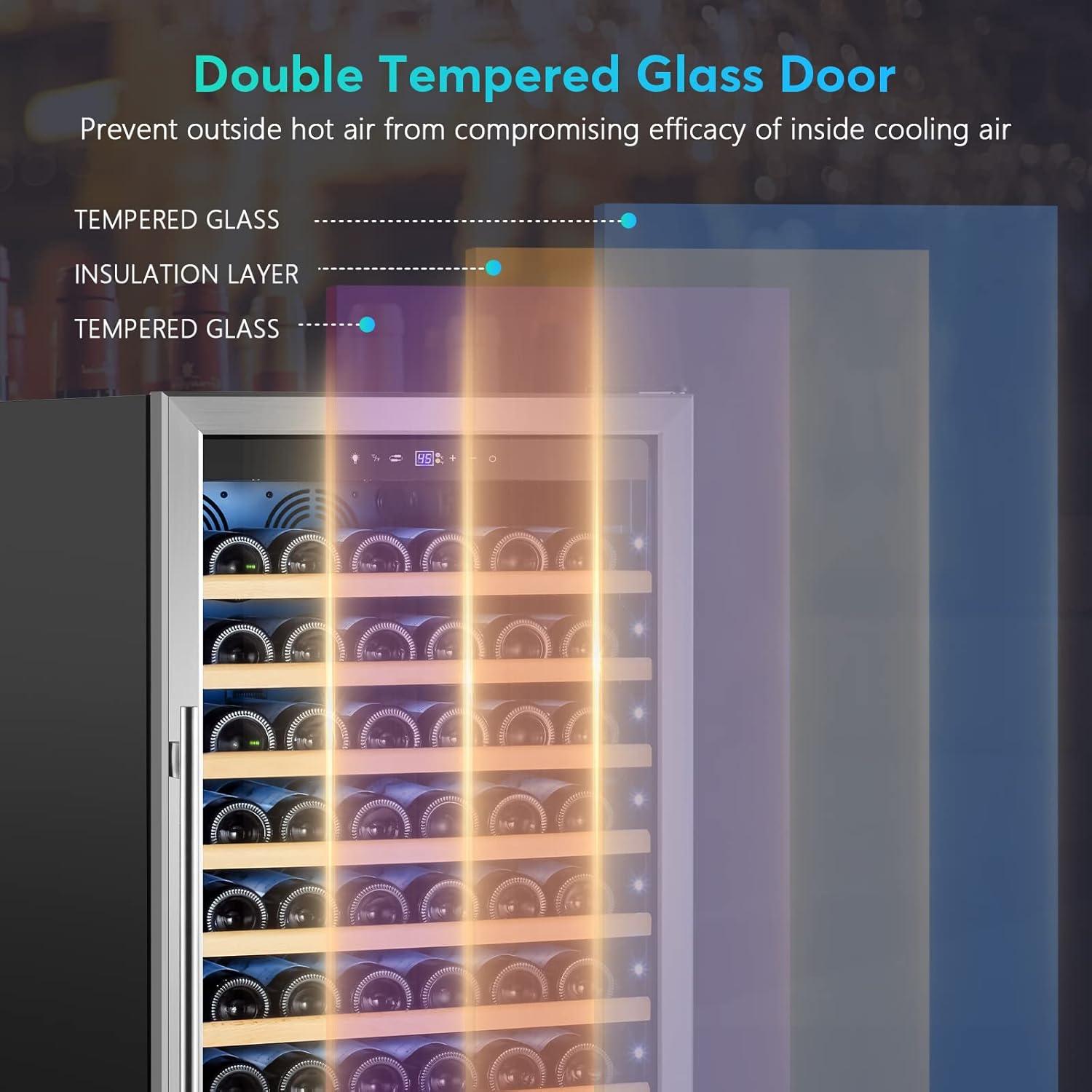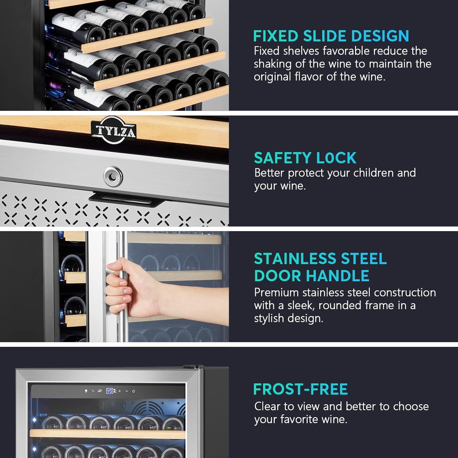 Tylza 110 Bottles Wine Cooler, 24 Inch Wine Cooler Refrigerator Built in or Freestanding Wine Fridge with Upgraded Compressor, Low Noise Fast Cooling and Intelligent Temperature Memory