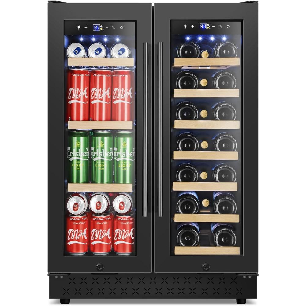 Tylza 30 Inch Wine and Beverage Refrigerator, Dual Zone Wine Beverage Cooler 30″ with French Door, Under Counter Wine Beer Fridge Built-In or Freestanding, Holds 29 Bottles and 110 Cans, Black(24″ Dual Zone Wine Beverage Cooler)