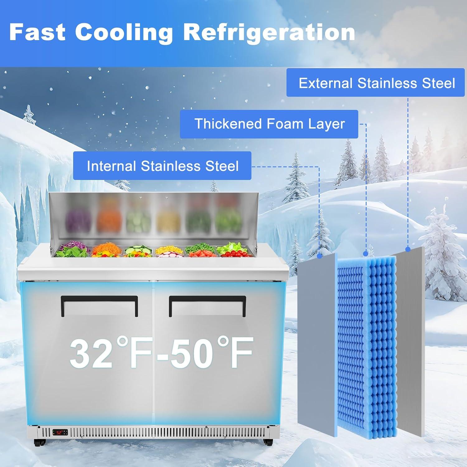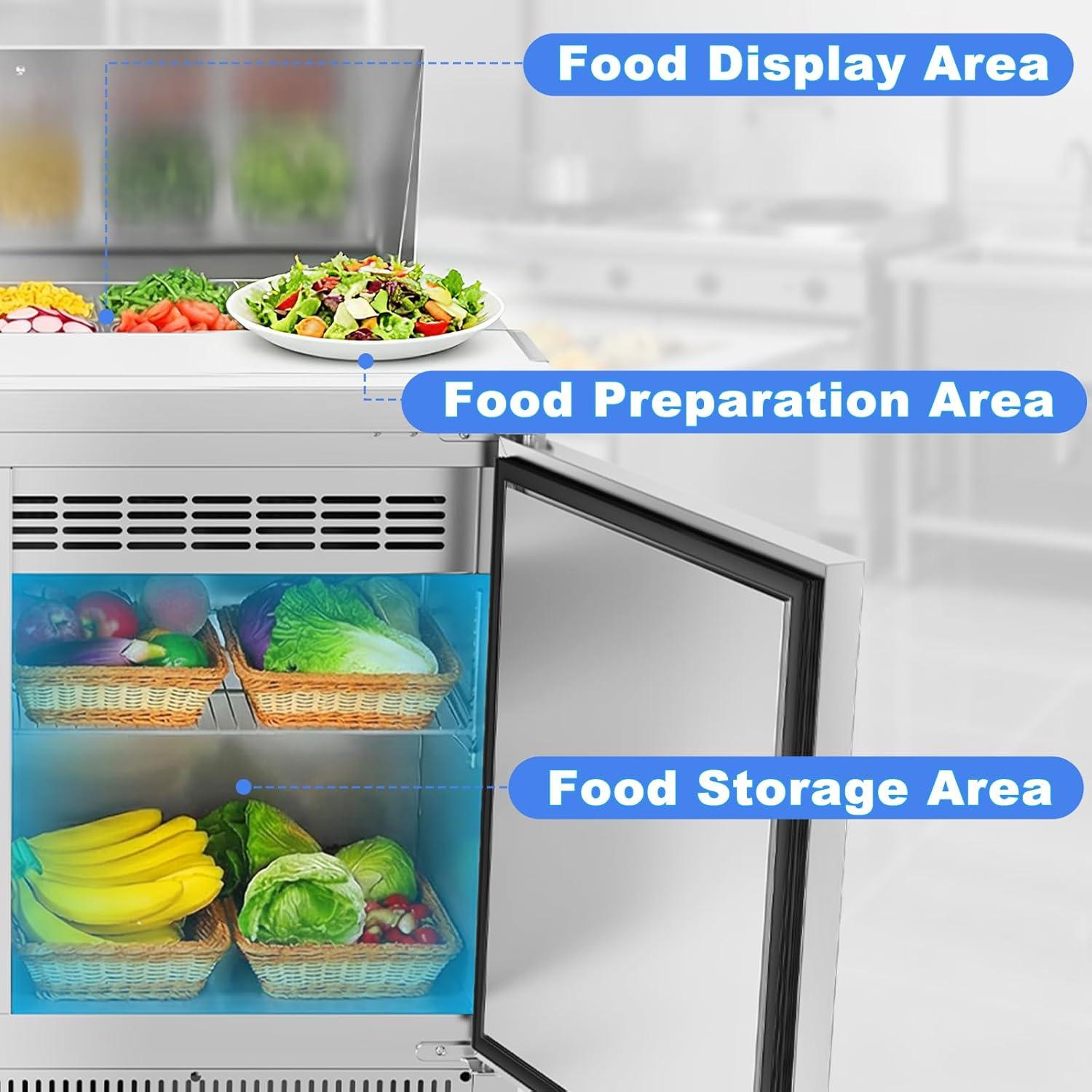 Precision 32-50°F Cooling: Maintain ideal food temps with a digital display and precise temperature control. The high-performance compressor and even airflow keep veggies crisp, meats safe, and dressings from freezing, ensuring top ingredient quality