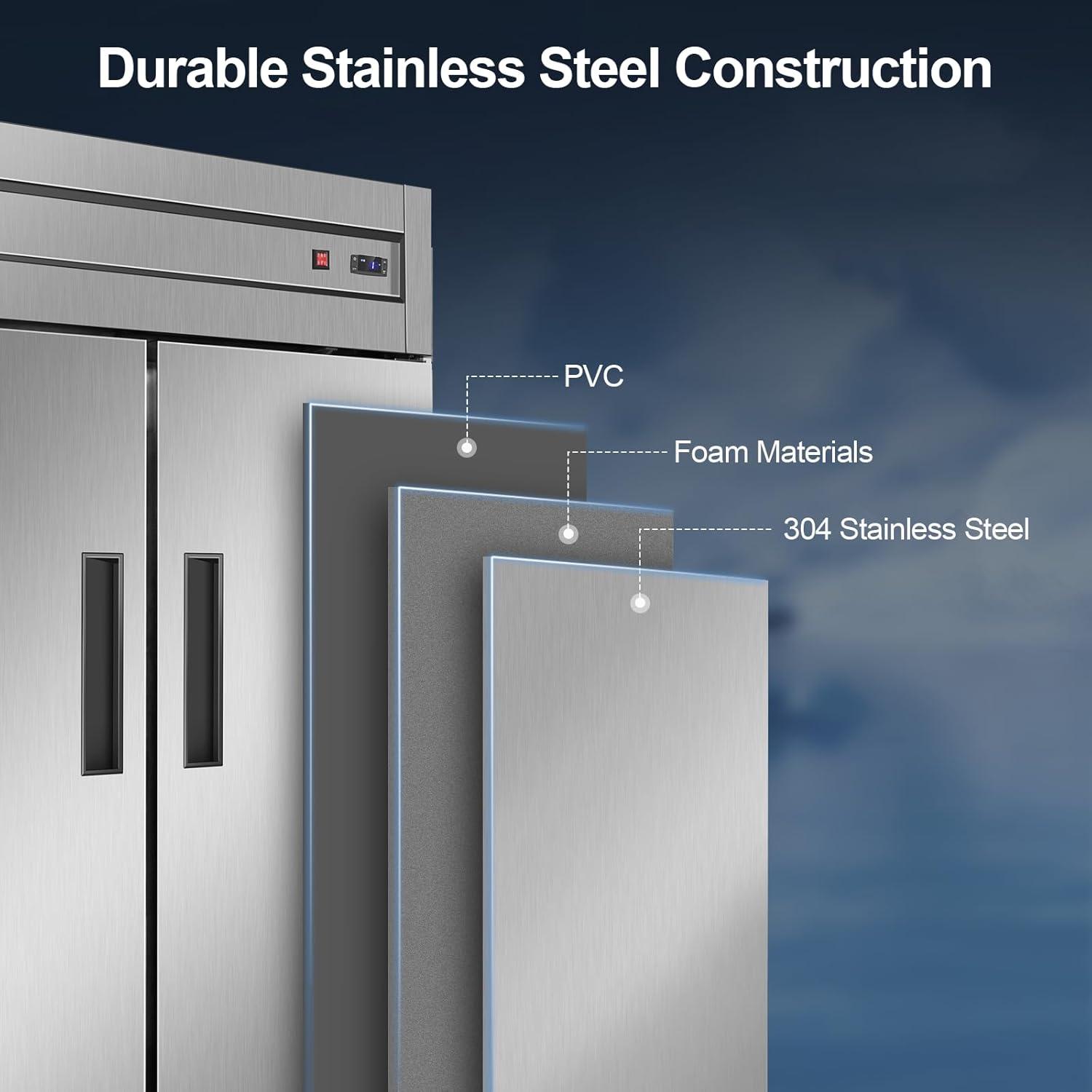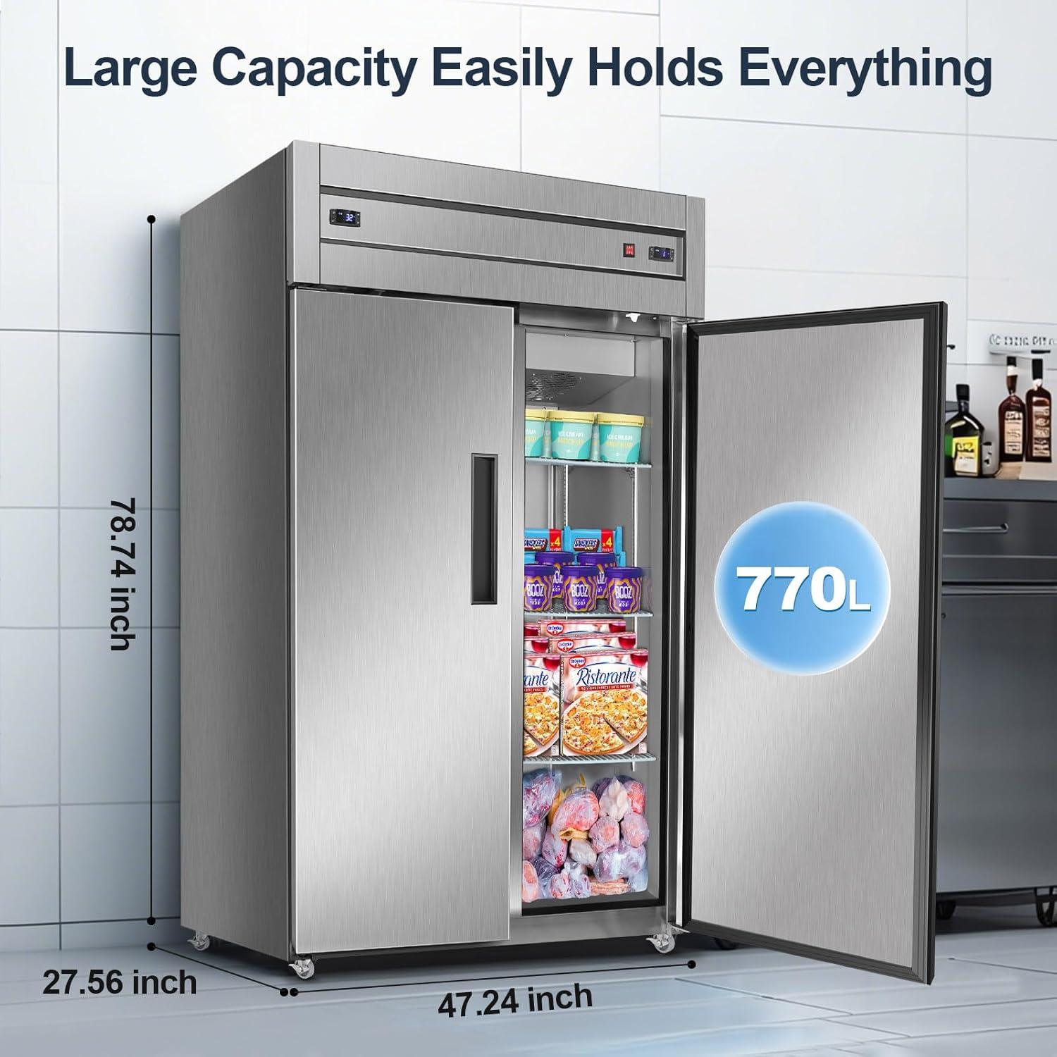 Tylza 530.6L Stainless Steel Upright Freezer, 27.5″ W Solid Single Door, Fan Cooling for Commercial Use