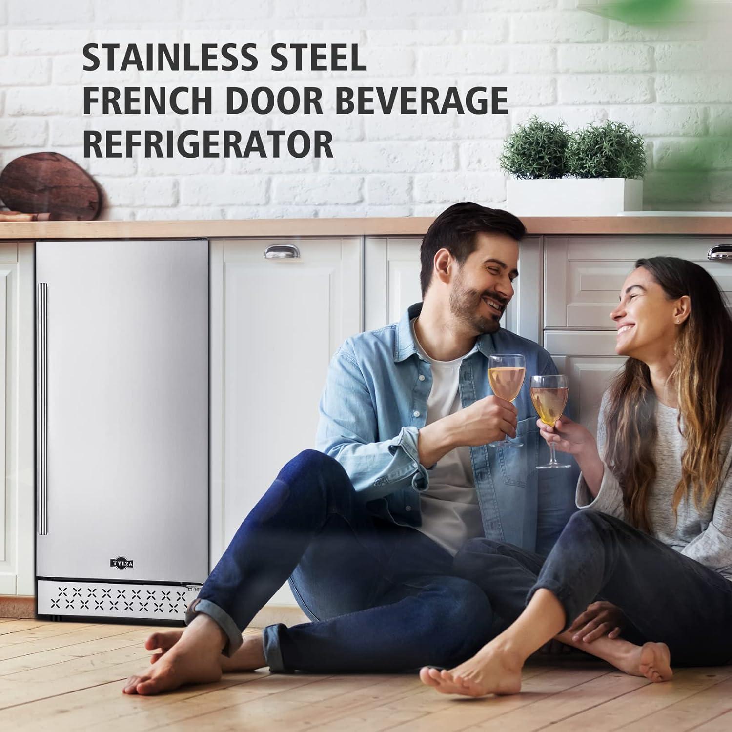 Tylza 8 Bottle Wine Fridge, Wine Cellar with Low-E Tempered Glass Door, LED Touchscreen, Lock, Frost Free, No Vibration, Wine Cooler Refrigerator for Red, White, Champagne or Sparkling Wine, Black(15" Outdoor Beverage Cooler)