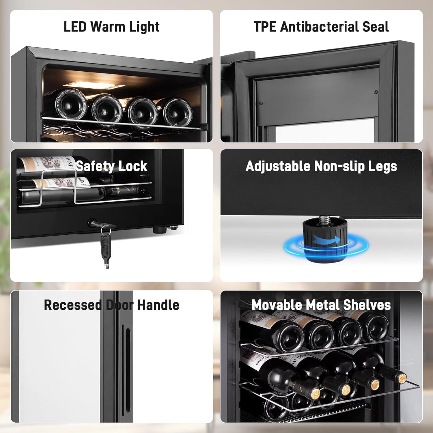 【Elegant and Fashionable & Worry-Free After-Sales】With a minimalist look and hidden door handle, this wine fridge small makes a thoughtful gift for housewarmings, parties, birthdays, holidays, and weddings, to partner, family, colleagues, friends, etc. We offer 12 months of worry-free support and 24/7 customer service, ensuring complete peace of mind.