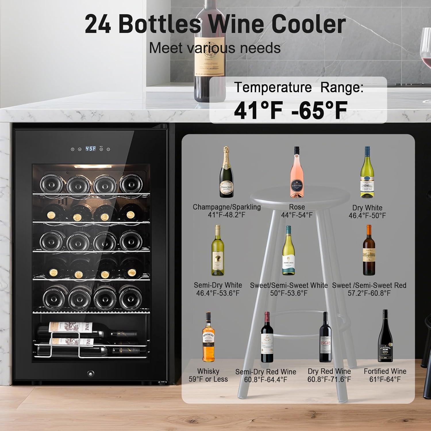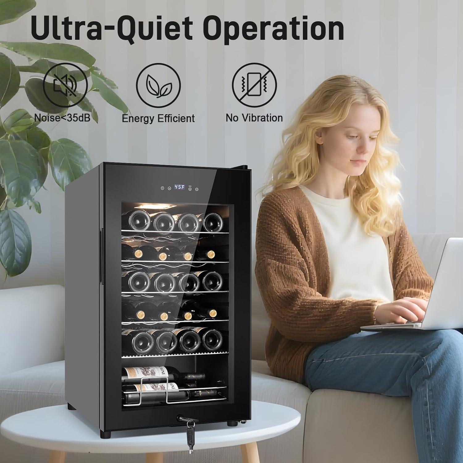 Tylza 8 Bottle Wine Fridge, Wine Cellar with Low-E Tempered Glass Door, LED Touchscreen, Lock, Frost Free, No Vibration, Wine Cooler Refrigerator for Red, White, Champagne or Sparkling Wine, Black(17" 24 Bottle Wine Cooler Black)