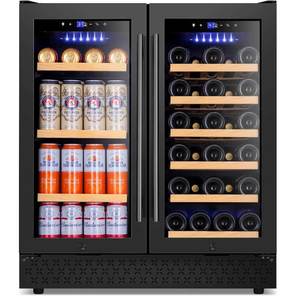 Tylza 8 Bottle Wine Fridge, Wine Cellar with Low-E Tempered Glass Door, LED Touchscreen, Lock, Frost Free, No Vibration, Wine Cooler Refrigerator for Red, White, Champagne or Sparkling Wine, Black(30" Dual Zone Wine Beverage Cooler Black)