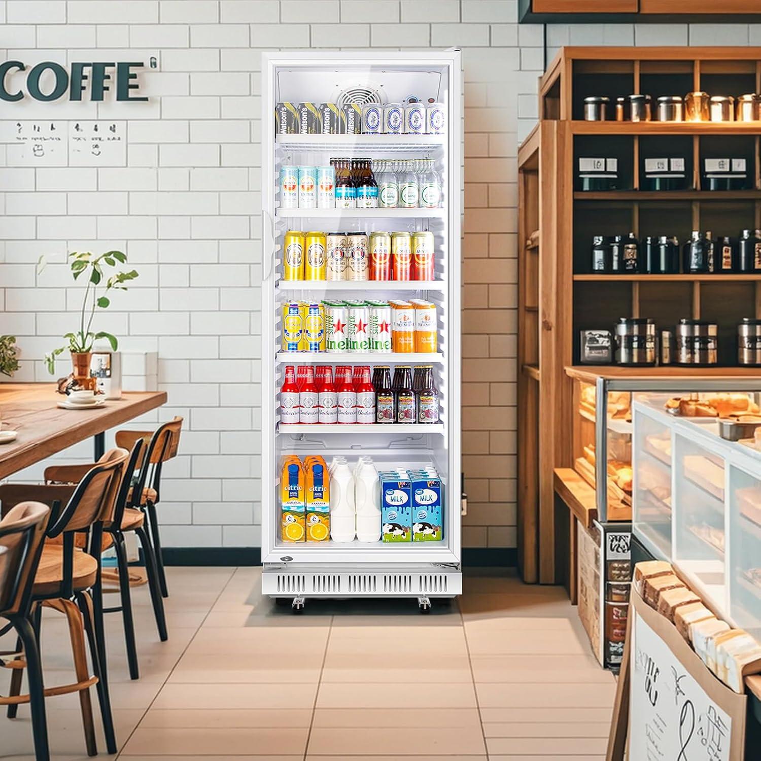 Tylza 8 Bottle Wine Fridge, Wine Cellar with Low-E Tempered Glass Door, LED Touchscreen, Lock, Frost Free, No Vibration, Wine Cooler Refrigerator for Red, White, Champagne or Sparkling Wine, Black(360L Commercial Display Fridge(White))