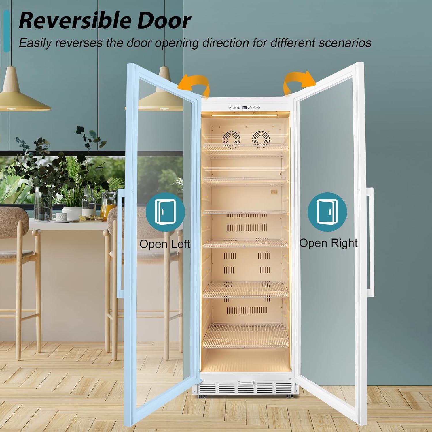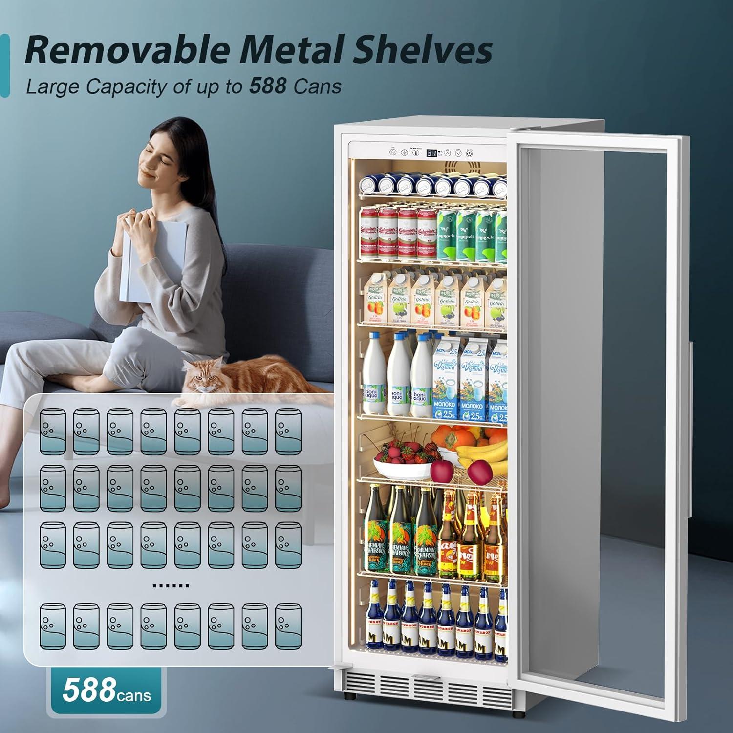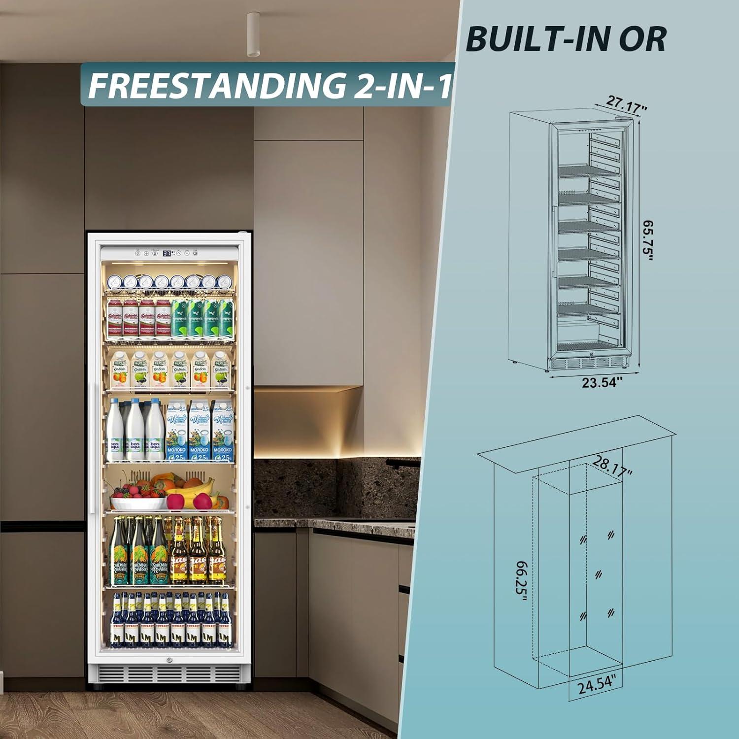 Tylza Wine and Beverage Refrigerator, 24 inch Dual Zone Wine Beverage Cooler Built-in and Freestanding, with Seamless Stainless Steel Door Quick Cooling Under Counter Beer Wine refrigerator(65.75"H Beverage Cooler White(Glass Door))