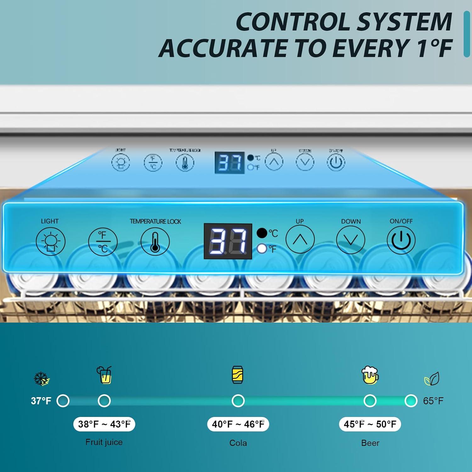 Powerful & Quiet Cooling System:The Tylza compressor wine and beverage cooler effectively provide Fast, Strong, Stable cooling and accurate Humidity, which can preserve your drinks in the best condition;It operates with low vibration—Noise can be controlled under 38 dB, which provides a quiet environment for your house;With simple and stylish modeling, this wine and beer fridge can add a touch of chic to your house;